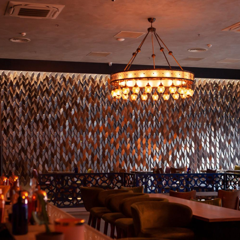 - NORM uses a system of small hexagonal tiles laid on a surface pivoted at varied angles to show differing shades and create subtle imagery and graphics.